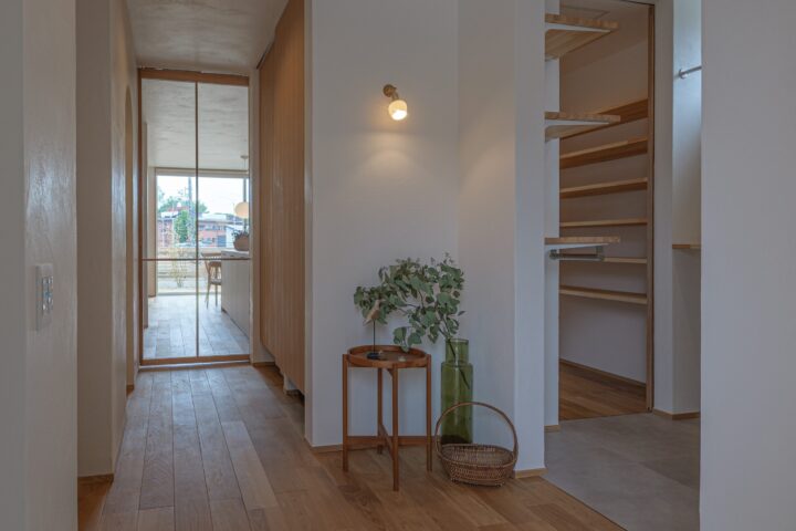 • 玄関ホール横の脱衣場からもパントリーを抜け、キッチンへ繋がります。
