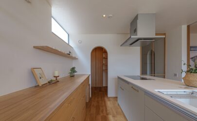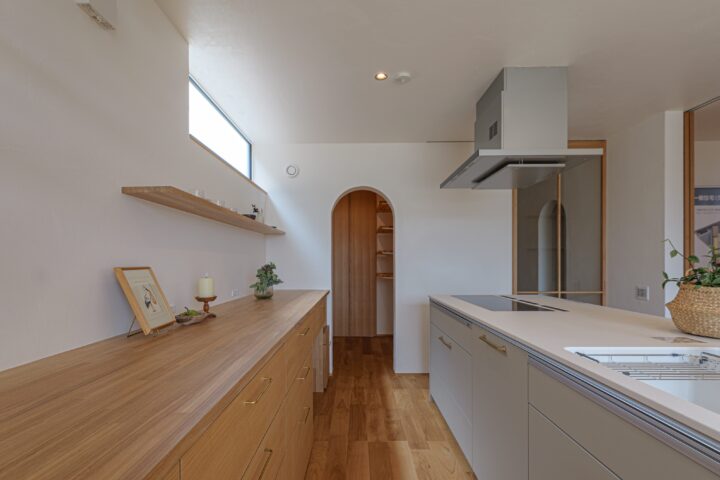 • キッチンの奥にアールの垂れ壁が可愛いパントリーがあります。