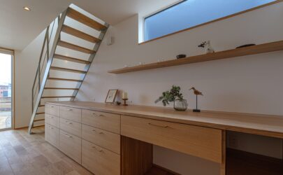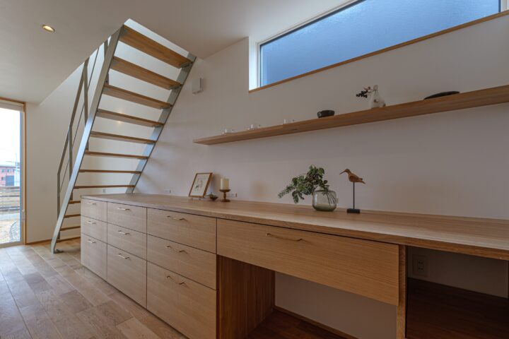 • 階段下の造作のキッチン背面収納。